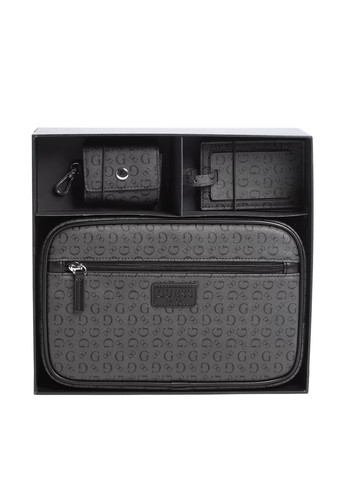 Стильний набір для подорожей GUESS. У набір входить несесер, чохол для бездротових навушників і бірка для валізи. На всіх предметах набір монограма бренду. Несесер з логотипом бренду спереду, спереду кишеню на блискавці, одне основне відділення, всередині одна кишеня на блискавці, одна кишеня накладна. Усередині текстильна підкладка. Чохол для бездротових навушників із застібкою кнопкою та карабіном. Багажна бірка з регульованою застібкою. Набір в коробці з логотипом бренду підійде для подарунка. Відмінна якість. Розмір несесеру: 26*17*9,5 см. Розмір чохла для навушників: 7,7*7*2 см Розмір бірки: 11*7 см.