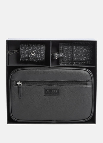 Стильний набір для подорожей GUESS. У набір входить несесер, чохол для бездротових навушників і бірка для валізи. На всіх предметах набору монограма бренду. Несесер з логотипом бренду спереду, спереду кишеню на блискавці, одне основне відділення, всередині одна кишеня на блискавці, одна кишеня накладна. Усередині текстильна підкладка. Чохол для бездротових навушників із застібкою кнопкою та карабіном. Багажна бірка з регульованою застібкою. Набір в коробці з логотипом бренду підійде для подарунка. Відмінна якість. Розмір несесеру: 26*17*9,5 см. Розмір чохла для навушників: 7,7*7*2 см. Розміру бірки: 11*7 см.