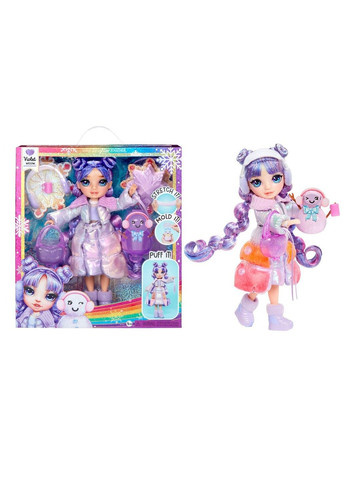 Зустрічайте сніжну колекцію RAINBOW HIGH! Зимове вбрання модних лялечок серії 'Winter Wonderland' не лише чудове, а й з чарівним «снігом» всередині, який перетворить кожне вбрання на дивовижне мистецтво! Просто додайте води та спостерігайте, як одяг заповнюється кольоровим снігом. Ще у ляльки є власний набір для створення сніговика з кінетичного піску, та кумедними аксесуарами. Збери усіх 4 стильних подруг, щоб створити свою модну веселку, що сяє!Лялька RAINBOW HIGH серії 'Winter Wonderland' - ВІОЛЕТТА - стильна красуня з волоссям і одягом ніжного бузкового кольору.Особливості: перед початком гри уважно ознайомтеся з інструкцією; повна артикуляція ляльки; довге розкішне волосся, яке можна розчісувати та створювати різні зачіски; неймовірно гарні та виразні скляні очі зі «справжніми» віями; висота лялечки – 28 cm; у ляльки чарівний «сніг» в одязі! За допомогою шприца, додайте до снігу трохи прохолодної води та спостерігайте, як сніг чарівним чином розпушується та змінює колір, змінюючи образ модниці; зліпіть милого сніговика з кінетичного піску! Розтягуйте його, жмакайте, змінюйте його образ за допомогою кумедних аксесуарів знову і знову.До набору входять: 1 лялька, топ, куртка, спідниця, шприц, навушники, пара взуття, сумочка, кружка, формочка для ліплення сніговика, картка для сніговика, кінетичний пісок, гребінець, підставка для ляльки, пачка блискучого порошку, інструкція.Рекомендовано для дітей віком від 4 років.