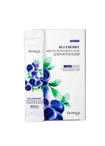 Антиоксидантна нічна маска для обличчя у стиках Bioaqua Blueberry Arbutin Moisturizing Mask із чорничним екстрактом Маска з чорницями BIOAQUA Blueberry Arbutin Moisturizing Mask підходить для всіх типів шкіри та для будь-якого віку, а власникам проблемної шкіри просто необхідна! Вона нормалізує вироблення себуму, нейтралізує запалення та подразнення. Засіб ефективно зволожує шкіру, вирівнює її рельєф, а також чинить антибактеріальну, регенеративну, тонізуючу та антиоксидантну дію. Активні складові: чорниця - містить безліч вітамінів та мікроелементів, необхідних нашому організму та шкірі в частості. Ягода має антибактеріальну, протизапальну та відлущувальну дію, тому успішно бореться з висипаннями та запаленнями на обличчі; вербена – нормалізує роботу сальних залоз, очищає шкіру від радикалів та інших токсинів. Також ця рослина має захисні та регенеративні властивості, заспокоює шкіру і знімає запалення; трегалоза – це потужний антиоксидант, який не лише омолоджує шкіру, але й запобігає появі зморшок та зламів. Це органічне з'єднання допоможе позбавити шкіру вільних радикалів і вивести токсини; бетаїн незамінний для сухої, вікової та чутливої шкіри. Він зволожує та утримує вологу. Бетаїн захищає дерму від несприятливих зовнішніх факторів, у тому числі від УФ випромінювання, що викликає фотостаріння шкіри; алантоїн відповідає за оновлення клітин шкіри, видаляє відмерлі клітини та стимулює появу нових. Речовина надає легкий пілінг ефект, робить дерму м'якою та ніжною. Маска з екстрактом чорниці діє вже після першого застосування: зволожує, заспокоює, пом'якшує шкіру, підвищує її тургор та вирівнює рельєф. При регулярному застосуванні зменшиться висипання, запалення, почервоніння, роздратування та зморшки. Колір обличчя стане рівним і здоровим, а шкіра чистою, ніжною та пружною. На чисту шкіру обличчя перед сном нанесіть потрібну кількість маски, уникаючи зони навколо очей і губ. Залишіть на ніч. Рекомендується застосовувати 2-3 рази на тиждень. Маска продається як по одній штучці стік-саше (4 мл), так і упаковкою (20 штук). Ціна вказана за одну штуку-стік. Об'єм: 4 мл.