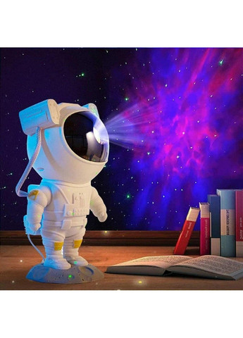 Лазерний нічник у формі астронавта проектує зоряне небо на стелю. Унікальний дизайн перегукується із темою зоряного неба та галктики. Голова космонавта повертається на 360° на магнітній подушці та дозволяє проектувати туманність різних кольорів на будь-яку поверхню. Регулюється пультом. Живлення: USB 5В Усього 8 режимів та 5 рівнів яскравості на вибір.