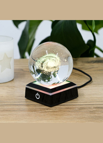 Світильник-нічник «Merry Cristmas» виконаний з екологічних матеріалів - дерева та скла. Усередині скляної кулі нанесено лазерне гравіювання у вигляді «Чумацького Шляху». 3D нічник має розміри: - Діаметр кулі: 8 см; - Висота підставки: 2 см. Працює світильник від USB-шнура. Нічник скляна куля відмінно підійде для дитячої кімнати, спальні чи кабінету. Він успішно виконує свою основну функцію – створює м'яке розсіяне світло. Не дратує очі та сприяє розслабленню перед сном. Декоративний міні світильник - чудовий подарунок на день народження, Новий Рік, новосілля: близьким людям, начальнику, другові, колезі по роботі.