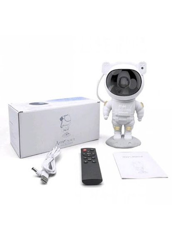 Ночник-проектор зоряного неба Астронавт із Bluetooth колонкою Лазерний нічник-проектор зоряного неба "Астронавт" створить яскраві, непередбачувані туманності та реалістичні сни, високочіткі зіркові галактики і злегка мерехтливі зірки, а також поєднання кількох кольорів нагадає вам про розслаблюючий нічний відпочинок під зірками. Його можна перемикати за допомогою пульта дистанційного керування чи кнопок. З LED-освітленням "Космонавт" щовечора можна спостерігати за яскравими різнокольоровими зображеннями різних галактик прямо зі свого ліжка. Нічник "Астронавт" - це проектор зоряного неба із 8 вбудованими варіантами кольорів космічних галактик. Світильник виконаний у формі людини у костюмі астронавта, а підставка імітує поверхню Місяця. Проектор-світильник "Космонавт" має рухливі руки (можуть обертатися довкола своєї осі). Також змінюється положення голови завдяки кріпленню до тіла магнітною абсорбцією (можна повернути різні боки під кутом до 90 градусів). На шоломі фігури розміщена камера самого проектора, тобто, повертаючи голову астронавта, можна змінювати положення зображення-проекції. Зоряний проектор "Туманність" та "Зоряне світло" можна проектувати окремо або одночасно. Відображаються різні ефекти туману, а швидкість та яскравість туману можна регулювати за потребою. Управління світильником-проектором здійснюється за допомогою 3 кнопок, що розташовані на корпусі фігури, а саме на рюкзаку Астронавта. Також тут розміщено гніздо живлення та індикатор часу. Нижньою лівою кнопкою на пульті керування можна перемикати звукове супроводження між вбудованими мелодіями ( білий шум, океан, музика для сну, багаття, спів птахів, шум гірської річки, ранковий звук природи, колискові ) та аудіофайлами з підключеного пристрою. Інструкція з управління нічником "Космонавтом": Кнопка живлення. При одночасному короткому натисканні виконується запуск проекції зоряного піднебіння. Кнопка перемикання туманності. Одноразові короткі натискання змінюють кольори туманності. Довге натискання кнопки включає/вимикає зображення туманності. Кнопка перемикання зоряного неба. Коротке натискання кнопки змінює частоту зникнення зірок. Довге натискання кнопки включає/вимикає проекцію зірок.