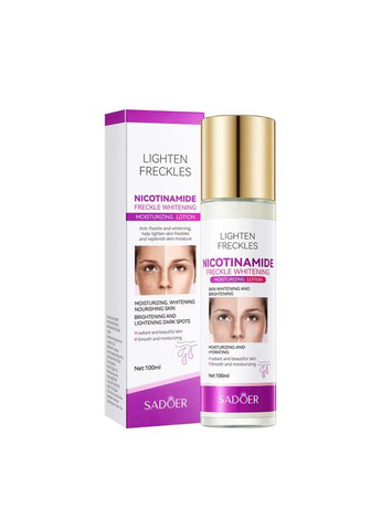 Перетворіть вашу шкіру з лосьйоном Sadoer Nicotinamide Freckle Removing! Цей потужний лосьйон, що освітлює і зволожує, 100 мл — ваш секрет ідеально рівного тону і сяючого обличчя. Забудьте про пігментацію та тьмяність, насолоджуйтесь гладкою та пружною шкірою щодня. Ідеальний для ранкового та вечірнього догляду у будь-яку пору року. Відкрийте для себе досконалість шкіри прямо зараз! Бренд: Sadoer Тип засобу: Лосьйон Косметика для: Обличчя Тип шкіри: Всі типи Призначення: Бореться з акне та проблемною шкірою, Відновлює захисний бар'єр шкіри, Освітлювальний ефект, Звужує пори та вирівнює тон обличчя, Зволожує та пом'якшує, Зменшує запалення та висипання Вага або об'єм