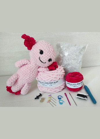 Набір для в'язання гачком аксолотля Включає майстер клас в'язання гачком (українською мовою), матеріали та інструменти. Наповнення набору: Матеріали: - пряжа для в'язання Himalaya dolphin baby рожевого кольору - 60г малинового кольору - 15г - наповнювач для іграшок (білий холлофайбер) - 50 г. - нитка для оформлення чорного та білого кольору - очки на безпечному кріпленні 12 мм - 2 шт. Інструменти: Гачок #4 - 1 шт. Голка швейна довга - 1 шт. Маркери - 2 шт. В ціну включена вартість майстер класу. !!! ПРОШУ ЗВЕРНУТИ УВАГУ !!! Майстер-клас не містить уроків в'язання, тільки схема та покрокові фото. ВАМ ТОЧНО ВДАСТЬСЯ, якщо: Ви коли-небудь тримали гачок у руках Знаєте основи в'язання Для в'язання іграшки вам необхідно тільки знати, як в'язати повітряну петлю і стовпчик без накиду. Ви маєте величезне бажання створити іграшку. У процесі в'язання ви завжди можете звернутися за допомогою або поясненням, контакти в МК. Чекаю на ваші замовлення! Приємного вам в'язання!