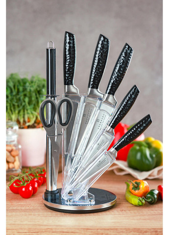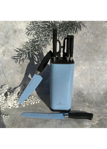Продуманість інтер'єру кухні до дрібниць змушує задуматися про придбання столових приладів, які будуть функціональними та зручними у використанні, одночасно будучи гармонійним продовженням загального стилю кухні. Всім цим вимогам відповідає набір ножів Bohmann BH-5041. Набір ножів Bohmann BH-5041 виконаний з високоякісної нержавіючої сталі, що забезпечує всім виробам довговічність та стійкість до зовнішніх впливів. Рукоятки ножів не тільки красиві, але й дуже міцні, вони зручні для використання та надійно утримують леза ножів. Дана модель складається з 7 ножів, призначених для найнеобхідніших операцій у процесі приготування їжі, а також красивої та зручної дерев'яної підставки. Розмір набору дуже компактний, він легко поміститься на столі, не захаращуючи простір. Ножі з набору Bohmann BH-5041 можуть все: універсальний ніж буде корисний завжди, ніж для м'яса допоможе впоратися з великими шматками, ніж для хліба поріже його на тонкі скибочки, не залишаючи навколо крихти, а ніж для чищення овочів дуже швидко підготує їх для подальшої обробки.