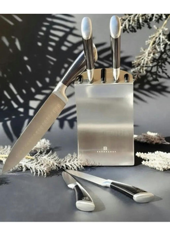 По-третє, ножі не будуть валятися по всій кухні безладно. Стильна, добротна підставка поставляється із набором за замовчуванням. До кожного ножа передбачено його особисте місце.