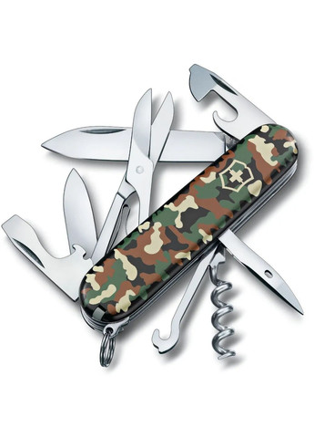 Ніж Victorinox Climber є однією з улюблених моделей. Впав до серця прихильників своїми неперевершеними ножицями. Виявляється, вони доречні у щоденному житті і просто безцінні у подорожах та манрівках. Незмінним є базовий набір інструментів: велике та мале лезо, інструменти для відкриття банок або зачистки дроту, викрутки, зубочистки, пінцети та штопор. До нього додалися ножиці та багатофункціональний гачок. Призначення: подорожі, місто, трекінг Особливості: - ніж, що має 14 функцій - чудовий на кожен день та для подорожей - ножиці та багатофункціональний гачок - перелік функцій - 14: - велике лезо - мале лезо - штопор - ніж для консервів - з малою пласкою викруткою 3 мм - відкривачка для пляшок - з великою пласкою викруткою 6 мм - з інструментом для зняття ізоляції - шило з розгорткою та отвором для шиття - ножиці - багатофункціональний гачок - кільце для підвісу або темляка - пінцет - зубочистка Технічні характеристики: Матеріал леза: високоякісна нержавіюча сталь Матеріал руків’я: целідор Розмір: 91 x 26 x 18 мм Вага: 82 г