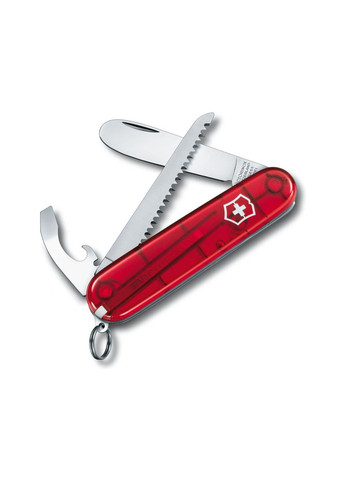 U0587943 Примітка: Не є холодною зброєю і не є предметом забороненим для продажу на території України Вид ножа: швейцарський, багатофункціональний Конструкція: складаний Тип замку: Liner Lock Тип відкривання: виїмка на лезі Тип ріжучої кромки: гладка Особливості: набір функцій - 9 Країна виробник: Швейцарія Країна реєстрації бренду: Швейцарія Марка сталі / Матеріал клинка: нержавіюча сталь Довжина рукояті: 84 мм Матеріал рукояті: нейлон Вага: 45 г Колір червоний Виробник: Victorinox Модель: My First Transparent Red Гарантія, міс: 120 Бренд: Victorinox Набір складається з ножа, ланцюжка та шнура-підвісу та ефектної подарункової упаковки Перший справжній інструмент для Вашої дитини. Кожна дитина хоче почуватися доросліше, і ніж для цієї мети підійде набагато краще, ніж сигарета, викурена потай від батька. Закруглений кінчик клинка робить його більш безпечним у використанні та менш агресивним в очах мами. У той же час ніж має всі властивості цього інструменту - дотепність і міцність. Завдяки цьому ніж привчає дитину до акуратності та уважності при роботі з інструментом, адже "мій перший вікторинокс" є гідним представником сімейства швейцарських ножів. У набір входить: - Ніж 0.2373.T з напівпрозорими накладками - Ланцюжок 4.1815 з двома карабінами - Шнур-підвіс для носіння на шиї Матеріал: високоякісна нержавіюча сталь Рукоятка: глянсовий нейлон Розмір: 84 мм Набір функцій - 9: великий клинок із закругленим кінцем пила по дереву комбінований інструмент з відкривалкою для пляшок з: ножем для консервів плоскою викруткою інструментом для зняття ізоляції кільце для підвісу пінцет зубочистка
