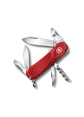 U0097829 Примітка: Не є холодною зброєю і не є предметом забороненим для продажу на території України Вид ножа: багатофункціональний, швейцарський Конструкція: складаний Тип замку: Liner Lock Тип відкривання: виїмка на лезі Тип ріжучої кромки: гладка Конструкція осьового хутроанізму: на шайбах Форма клинка: drop-point Особливості: зубочистка , шило , велика плоска викрутка , інструмент для зняття ізоляції , відкривалка для пляшок , пилка для нігтів , мала плоска викрутка , інструмент для догляду за нігтями , пила по дереву , штопор , консервний ніж , пінцет , кільця Країна виробник: Швейцарія Марка сталі / Матеріал клинка: нержавіюча сталь Довжина рукояті: 85 мм Матеріал рукояті: нейлон Вага: 71 г Колір червоний Виробник: Victorinox Модель: Evolution S13 Гарантія, міс: 120 Бренд: Victorinox Ніж VICTORINOX Evolution S13 (2.3813.SE) Багатофункціональний ніж від відомого виробника Цікавою, характерною рисою Evolution є особлива, ергономічна рукоять із спеціальними виїмками для пальців. Вона ніби повторює форму кисті, що дозволяє надійніше утримувати ніж у руці.