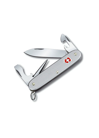 U0086045 Примітка: Не є холодною зброєю і не є предметом забороненим для продажу на території України Вид ножа: багатофункціональний, швейцарський Конструкція: складаний Тип замку: Slip Joint Тип відкривання: виїмка на лезі Тип ріжучої кромки: гладка Конструкція осьового хутроанізму: на шайбах Форма клинка: drop-point Особливості: плоска викрутка, відкривалка для пляшок, маленька викрутка, інструмент для зняття ізоляції, шило, консервний ніж, кільце для підвішування Країна виробник: Швейцарія Марка сталі / Матеріал клинка: нержавіюча сталь Довжина рукояті: 93 мм Матеріал рукояті: алюміній Вага: 71 г Колір: сріблястий Виробник: Victorinox Модель: Pioneer Гарантія, міс: 120 Штрихкод: 7611160012838 Бренд: Victorinox Ніж VICTORINOX Pioneer (0.8201.26) - це багатофункціональний, зручний ніж для людей з активною життєвою позицією. Довжина 93 мм, ручка з накладками з рифленого алюмінію. Він легкий і компактний, до того ж містить усі основні інструменти, яких ви, можливо, потребуєте. Відмінно ріжуче велике лезо, відкривачка для пляшок, викрутки різного розміру, пристосування для видалення ізоляції, а також підвісне кільце - чудово підійдуть у побуті, на рибалці, полюванні, відрядженнях або в туристичних походах.