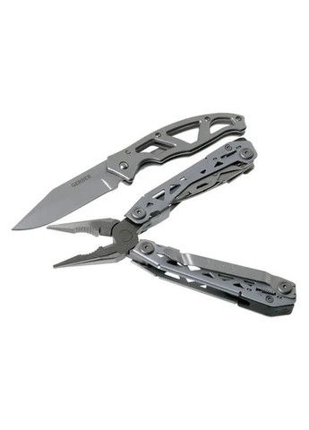 Подарунковий набір Gerber Suspension NXT & Paraframe 1052473 - набір із двох практичних помічників для подолання всіх перешкод, з якими ви стикаєтесь. Набір поставляється в подарунковій упаковці, що робить його ідеальним для друга чи члена сім'ї. Основні Кількість функцій: 15 Матеріал клинка: нержавіюча сталь Матеріал рукояті: нержавіюча сталь Довжина в складеному виді, мм: 110 Вага, г: 190 Комплектація: ніж, мультитул Гарантія: довічна Інструменти 1: плоскогубці 2: комбіновані плоскогубці 3: 3 викрутки 4: викрутка Філліпс 5: ножиці 6: відкривачка 7: лінійка 8: пила 9: шило