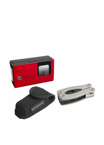 Мінімультитул Pony від Schwarzwolf – це універсальний багатофункціональний інструмент 13 в 1, що має маленькі габарити. Довжина складеної моделі – 6,8 см. В розкладеному вигляді мінімультитул має дві ручки, які служать корпусами для багатьох інструментів: викруток, пилки, ножа, відкривачок різного типу (для бляшанок, пляшок), пилочки для нігтів тощо. Всі інструменти виготовлені з нержавіючої сталі. Цей матеріал забезпечує міцність, стійкість до механічних пошкоджень та довговічність виробу. Зручні неслизькі ручки мають ергономічну форму, вони зроблені з алюмінію. Мультиінструмент стане чудовим подарунком для тих, хто любить компактні й корисні речі. Мінімультитул Pony упакований в чорний неопреновий чохол і коробку Schwarzwolf. Неопрен – водонепроникний м’який матеріал, він захищає інструмент від вологи.
