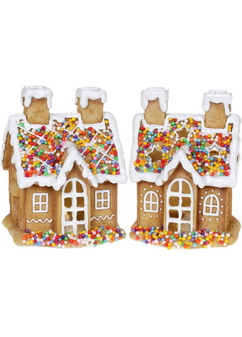 Декоративна новорічна статуетка "Пряничний Будиночок" з LED-підсвічуванням від батарейок. Матеріал – полістоун (штучний камінь). Розмір: 10.5х9х13.5см. Колір: світло-коричневий. На вибір 2 дизайни.