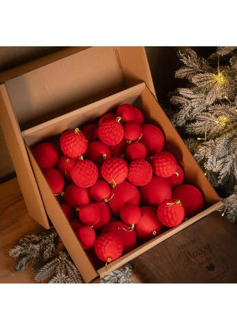 Набір новорічних куль "Оксамит" 40 шт. Червоний Цей набір новорічних пластикових куль стане незамінним елементом для прикраси вашої ялинки та створення святкової атмосфери. У комплекті 40 куль різних розмірів, кольорів та текстур, що дозволяє експериментувати з декором і додати яскравості будь-якому простору. Кулі виготовлені з якісного та легкого пластику, що робить їх безпечними та довговічними. Вони стійкі до ударів та не б'ються, тому підходять для використання в будинках з дітьми або домашніми тваринами. Набір включає кулі з велюровим покриттям різної текстури. Основні характеристики: Кількість в наборі: 40 шт. Розмір куль: 10 см, 8 см та 6 см. Матеріал: пластик Розмір Коробки: 43х43х13 Тип поверхні: Оксамит Призначення: для прикраси ялинок, гірлянд, вінків та інтер'єру Цей набір новорічних пластикових куль стане чудовим вибором для створення яскравого і безпечного святкового декору!