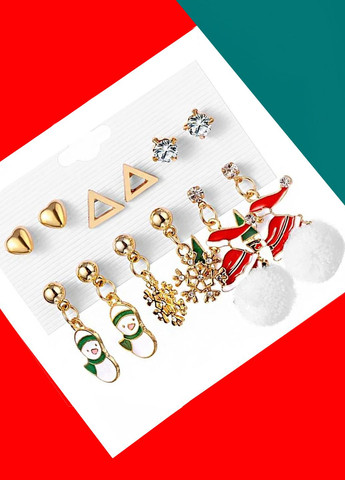 Набір сережок різноколірний - тематична прикраса до зустрічі Різдва, Нового Року та в цілому всіх зимових свят, на 6 днів тижня ви можете мати різний декор для Вашого образу, причому раджу міксувати їх між собою, грайтеся і будьте неперевершені. Адже це свята, веселощі і радощі. Розмір сережок з підвіскою приблизно 3,5х1,5 см, золотисті, маленькі - 0,7 см. Матеріал - сплав, текстиль, стрази.