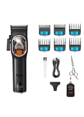 Особливість машинки та тримера – водонепроникність, це дозволить використовувати його у ванній або душі, а також мити його під проточною водою. Світлодіодний дисплей показує заряд батареї у відсотках. Також набір оснащений ножицями, гребінцем, щіточкою та олією для чищення та догляду за приладом, пеньюаром для стрижки та USB кабелем зарядки.