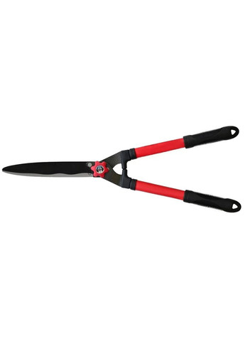 Садові ножиці довжиною 570 мм являють собою секатор з двома ріжучими лезами, які працюють за принципом звичайних ножиць. Хвилясті леза із сталі, верхнє з PTFE покриттям (проти налипання), упор для полегшення віддачі від рукояток в процесі різу. Регульований зазор між лезами. Гайка баранчик перешкоджає мимовільному розкручуванню лез. Довгі рукоятки забезпечують природне положення тіла під час роботи. Ножиці призначені для стрижки живоплоту, тонких гілок. Ножиці для саду допоможуть вам з доглядом за виноградом, квітами, кущами. Без них не обійтися професійному садівнику або ландшафтному дизайнеру.