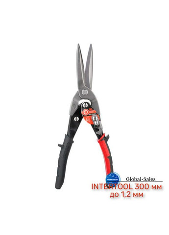 Ножиці для металу прямі подовжені 300 мм призначені для різання за пластиком, металом максимальною товщиною до 1.2 мм. Ножиці виготовлені з хромо-молібденової сталі. Напрямок різання: прямі; Твердість за шкалою Роквелла: 56-62 HRC