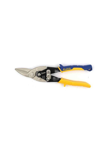 Ножиці по металу 250 мм CrMo, прямі, нікельовані 02-05-1025 ТМ Kubis Професійні ножиці по металу використовують для різання листових металів і матеріалів різної твердості Виготовлені з хром-молібденової сталі Ковані загартовані леза із зазубреними кінцями, HRC 50 Використовуються для різання стали холодної прокатки до 1.2 мм і нержавіючої сталі до 0.7 мм Нікельоване покриття Ергономічні двокомпонентні ручки