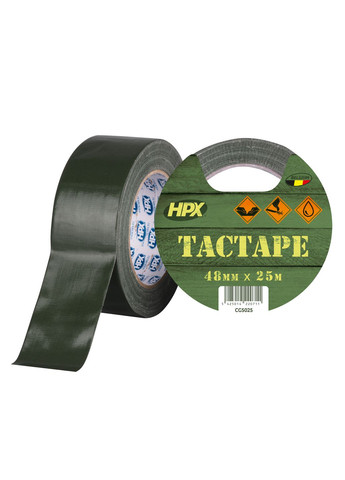 водонепроникна стійка до розриву відривається вручну УФ стійкість - низька вологостійкість - висока стійка до погодних умов сила адгезії - 13 Н/25 мм поверхні - гладкі, шорсткі хімічна стійкість - середня міцність на розрив - 187 Н/25мм температура експлуатації - до 60°C габарити - 48 мм Ш х 25 м Д х 0.3 мм Т носій - тканина з бавовни / поліестеру з ПЕ покриттям середовище застосування - всередині та зовні приміщень тип клею - суміш натурального каучуку та синтетичної смоли матеріали - метал, пластик, текстиль, дерево, шкіра, тканини, ПЕ, ПП TACTAPE це високоякісна армована стрічка на тканинній основі врятує практично в будь-якій ситуації, де потрібно відремонтувати пошкодження поверхні. Підходить для тимчасового та постійного ремонту, бандажування, кріплення. Приклади застосування: електрика - додаткова герметизація муфт та електроконтактів сантехніка - усунення протікання, зміцнення стиків та швів труб авторемонт - захист суміжних деталей при поліруванні ("бронескотч") шоу-бізнес - монтаж сценічних конструкцій, швидкий монтаж підлогових покриттів холодильне обладнання - герметизація стиків для підвищення енергоефективності опалення та кондиціювання - герметизація повітроводів, повітряних каналів, трубна ізоляція садівництво - ремонт садових шлангів, монтаж сіток для живоплотів та кучерявих рослин на будь-які види поверхонь, підв'язування кущів та дерев туризм та активний відпочинок - ремонт наметів, тентів, гамаків, туристичних стільців, пошкоджень верхнього одягу, рюкзаків, гумових човнів, матраців, басейнів