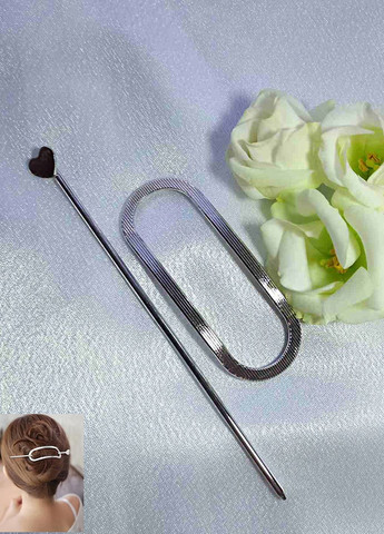 Прикраса для волосся сріблястого кольору. Розмір 7х2,8 см, довжина палички 12,5 см. Склад: метал. Заколка з палочкою для волосся - металічна, стильний витончений аксесур, відмінної якості, який підійде для особливого вечора і ділової зустрічі. Заколка мінімалістична в ній немає нічого зайвого і обтяжливого, підходить під будь-який Ваш лук.