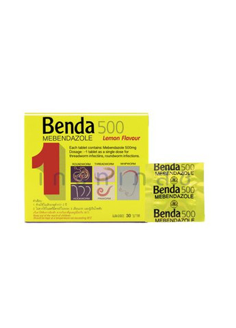 Антигельмінтний препарат широкого спектру паразитів Benda 500 Mebendazole Thai Nakorn Patana, 1 шт. Таїланд 1 жувальна таблетка антипаразитарного препарату широкого спектру Benda 500 для очищення організму і його профілактики від усіх видів гельмінтів. Benda 500 допомагає від глистів, аскарид, остриць, волосоголовець (круглий хробак) і нематод. Паразити знаходяться по безлічі хвороб і проблем зі здоров'ям, таких як: Хонічна втома, проблеми зі сном, екзема, дерматит, вугрі та інші проблеми зі шкірою Головний, біль, втрата апетиту, симптоми грипадепресія та інші психічні розлади, біль у суглобах, запорі або поносі, болі в животі, сухі губи, блювота, проблеми із зором, здуття живота, диспепсія і проблеми зі шлунком, менструальні проблеми, безпліддя, проблеми з диханням Паразити можуть навіть потрапити в мозок і пошкодити зір і нерви назавжди. За оцінками експертів, 90% населення світу страждають від паразитів. Люди в Азії, включаючи Таїланд, добре знають про паразити, і відомо, що людина повинна проходити лікування дегельмінта кожні три місяці. Це лікування має проводитися під час повного місяця, оскільки паразити проводять репродуктивну діяльність і групуються разом. Тайська медицина Benda Mebendazole 500 містить активний інгредієнт Mebendazole 500 мг. Він ефективний для широкого спектру паразитів, найчастіше використовується для круглих хробаків, остриць, анкілостів, нітевидних хробаків, whipworms тощо. Протигельмінтний для лікування паразитарних інфекцій. Активний інгредієнт Мебендазола 500 мг. Таблетку Benda 500 приймають: для лікування ентеробіозу, аскаридозу, анкілостомозу, стронгілоїдозу, трихоцефалезу, трихінельозу, ехінококкозу, множинних нематод, змішаних гельмінтозів та інших видів паразитів. Для профілактики виникнення паразитів Застосування і дозування таблетки проти паразитів Benda 500: Розжувати таблетку і проковтнути. Для повного усунення всіх видів паразитів або профілактики достатньо прийняти 1 таблетку. Через 3-6 місяців можна повторити прийом. Протипоказання: не підходить для дітей до 2 років, не підходить для вагітних жінок протягом перших трьох місяців вагітності, не підходить для людей із захворюваннями печінки.
