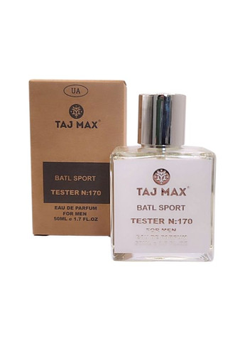 Парфумована вода TAJ MAX 170 HUGO BOSS BOTTLED SPORT чоловіча 50 мл 39570. Країна виробник: Україна. Вид парфумерної продукції: тестер - парфумована вода. Класифікація: мас маркет. Об'єм: 50 мл. TAJ MAX Tester 170 50 мл. Філософія аромату – Hugo Boss Bottled Sport. Стать: чоловіча. Сімейство: фужерні. Верхні ноти: цитруси. Середні ноти: кардамон, лаванда. Базові ноти: ветивер, деревина. Стійкість не менше 12 годин (залежно від типу шкіри та поверхні, що наноситься). Туалетна вода TAJ MAX - це якісний продукт, розрахований на сміливих та неординарних жінок та чоловіків, які цінують високу якість та цікавий дизайн продукції, і все це за доступною ціною. Ретельно підібрані компоненти, високоякісне скло та стильний елегантний дизайн флакону гарантують довгий термін служби наших ароматів. Вся парфумерна лінійка представлена в презентабельній упаковці, що робить їх чудовим подарунковим варіантом. Виробник ОАЕ – Україна. Ми працюємо на ринку парфумерії більше 20 років. Займаємося просуванням парфумерних колекцій різних торгових марок та брендів Наша компанія являється ексклюзивним дистриб'ютором низки парфумерних лінійок класу мас-маркет і мідл-маркет. Маємо широкий асортимент: одеколонів, туалетної та парфумованої води, дезодорантів, подарункових наборів для чоловіків і жінок. Продукція представлена з урахуванням вишуканих смаків і вподобань як українського так і європейського споживача. Ми постійно оновлюємо асортимент у руслі тенденцій світової моди, інноваційних ідей та нових товарів, творчості та професіоналізму. Парфуми оптом для продажу в магазинах косметики! Парфуми в роздріб для найвибагливішого споживача. Ми організуємо стабільні поставки парфумів в найкоротші строки! Приєднуйтесь до нашої родини задоволених клієнтів!