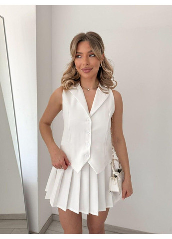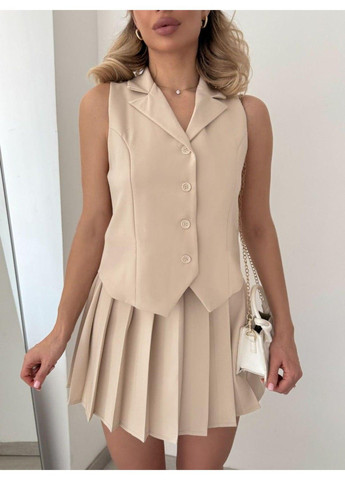 Костюм двійка (жилет+спідничка) , спідниця міні довжини, плісерована на жилетка з коміром Мод НО- 1061Тканина: Костюмка барбі люкс якостіРозміри: 42-44, 46-48Кольори: Чорний, Молоко, Рожевий, Голубий, БежКостюмчик можна одягати як під каблуки,так і під спортивне взуття. Також можна комбінувати окремо спідничку чи жилет з іншим одягом