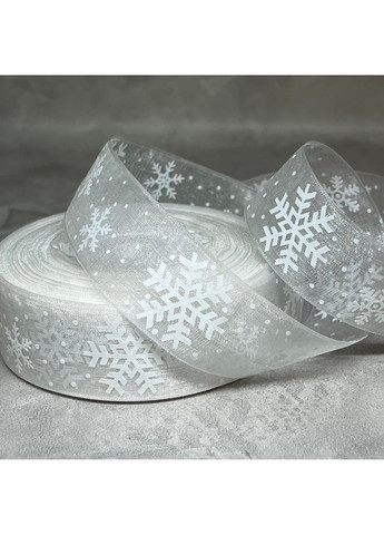 Стрічка Органза "Білі сніжинки"- легка і повітряна декоративна стрічка з напівпрозорої тканини, прикрашена ніжним візерунком сніжинок. Вона ідеально підходить для оформлення святкових декорацій, подарунків, а також для свторення новорічного декору. Завдяки своїй легкості та елегантності, стрічка додає композиціям зимоіої казковості та святкової атмосфери. ціна за 1 метр