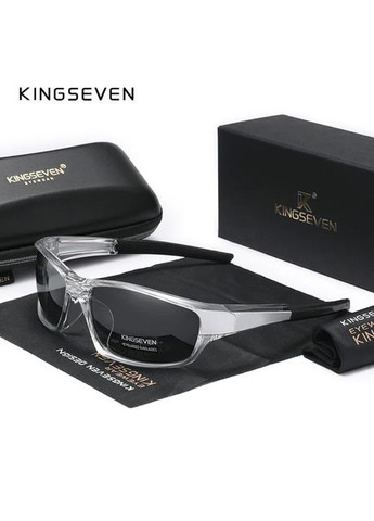 Оригінальні фотохромні поляризаційні сонцезахисні окуляри KINGSEVEN N7899 мають сучасний, стильний дизайн. Окуляри виконані з високоякісних матеріалів. Оправа та дужки окулярів виготовлені з алюмінієвого сплаву з анодним покриттям, а лінзи виготовлені з оптичного полікарбонату. Особливістю цих лінз є фотохромні, поляризаційні властивості, які дають змогу їм адаптуватися до різних умов освітлення. Окуляри з такими лінзами змінюють ступінь затемненості (колір) лінз залежно від інтенсивності сонячних променів. На Сонці вони темніють за кілька секунд, а за відсутності ультрафіолетового випромінювання, наприклад у приміщенні або в похмуру погоду, лінзи знову світлішають. Загалом лінзи забезпечують якісне зображення й перенесення кольорів, захист очей від прямих сонячних променів, відблисків від поверхонь та небезпечного ультрафіолетового випромінювання за стандартом UV400 (фільтрують UVA і UVB промені). Окуляри надають комфортне їхнє використання завдяки силіконовим носоупорам і приємному матеріалу завушен дужок. Окуляри мають легкий і стильний вигляд, підходять для водіння автомобіля, риболовлі, прогулянок, їзди на велосипеді з чудовим захистом очей. Особливості: - Бренд: KINGSEVEN. - Модель: N7899. - Матеріал оправи: алюмінієвий сплав. - Оптичні властивості лінз: UV400 / фотохромні / поляризовані. - Матеріал: полікарбонат / алюмінієвий сплав / полімер / силікон. - Колір: сіра зі сріблястим оздобленням оправа, сірі фотохромні лінзи. - Розміри та комплектація на фото. УВАЖНО дивіться розміри на фото.