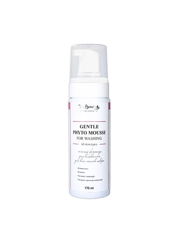 Ніжний фітомус для вмивання Top Beauty для всіх типів шкіри 150 мл Ніжний фітомус для вмивання Top Beauty - м'який засіб для чищення. У його формулі немає барвників, парабенів та інших агресивних компонентів, здатних пошкодити чи пересушити шкіру. Пінка для вмивання збагачена трав'яними екстрактами: Алое віра зволожує і живить шкіру, утворює на шкірі захисну плівку, яка захищає від ультрафіолетових променів і зволожує її. Троянда має властивість розгладжувати зморшки і заспокоювати подразнення. М'ята допоможе проблемній шкірі впоратися із запаленнями, нормалізує обмінні процеси у клітинах, забезпечить рівний тон та здорове сяйво. Олія волоського горіха, за рахунок поліненасичених жирних кислот і антиоксидантів (вітаміни А, Е, С), що містяться в ньому, володіє регенеруючими і омолоджуючими властивостями, відповідно може використовуватися як засіб для боротьби з віковими змінами шкіри, зокрема для профілактики та позбавлення від дрібних зморшок . Протеїни шовку - роблять шкіру м'якою шовковистою. Підходить для всіх типів шкіри. Спосіб застосування: нанесіть на вологу шкіру обличчя та шиї та злегка помасажуйте обличчя круговими рухами. Потім змийте пінку теплою водою і за необхідності нанесіть звичайний крем. Об'єм: 170 мл