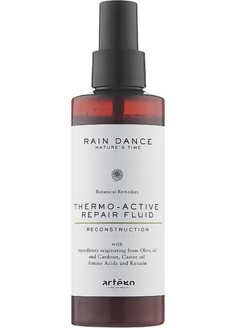 Після використання стайлінгових пристроїв і фену помічаєте, що локони стають тьмяними, пористими та сухішими, ніж зазвичай? Незмивний термоактивний флюїд бренда Artego зробить все, щоб ваша укладка або зачіска були доглянутими, акуратними, а структура пасом — здоровою. Засіб з активними компонентами відновлює і розгладжує локони зовні, регенеруючи внутрішню частину волокон, щоб волосся набуло щільності, пружності і густини. За регулярного застосування ви зможете забути про посічені кінчики, ламкість і тьмяність, адже пасма будуть захищені від агресивного впливу підвищеної температури. Особливості Artego Rain Dance Thermo-Active Repair Fluid: - кератин та амінокислоти відновлюють пористі ділянки структури;- згладжують розпушену кутикулу;- усувають ушкодження волосяних волокон;- рицинова олія живить пасма від коренів до кінчиків;- надає густоти та щільності локонам;- гліцерин зволожує та кондиціонує волосся;- забезпечує надійний захист під час термічної обробки;- цукор дарує герметизацію пасом;- запобігає появі статичного ефекту;- надає волоссю гладкість, слухняність та м'якість;- усуває ламкість;- попереджає посіченість кінчиків.