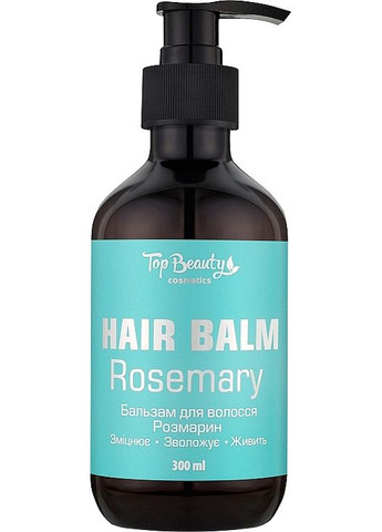 Бальзам для волосся «Розмарин» від бренда Top Beauty чинить зволожувальну, живильну та зміцнювальну дію. Цей косметичний продукт комплексно й ефективно піклується про доглянутий і здоровий вигляд пасм. Б'юті-засіб надає локонам природний об'єм, здоровий блиск, м'якість, пружність та шовковистість. Формула бальзаму містить активні компоненти, які дбають про гідратацію волосся, роблять його міцним і сяйним. Особливості бальзаму для волосся Top Beauty Rosemary: - підходить для всіх типів волосся;- флакон має естетичний дизайн та оснащений зручним дозатором;- полегшує розчісування та робить волосся слухняним;- забезпечує кондиціонувальний ефект;- гліцерин зберігає оптимальний рівень вологи в пасмах та запобігає їхньому зневодненню;- екстракти розмарину і ромашки живлять волосяні фолікули та сприяють зміцненню локонів;- кокосова олія насичує вологою кучері, додає їм еластичність, виконує живильну і пом'якшувальну функцію;- D-пантенол проявляє відновлювальні, регенерувальні та зволожувальні властивості.