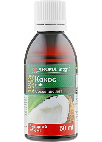 Масло кокоса – найпоширеніше в косметології, і це не дивно, адже воно є джерелом найцінніших вітамінів А, Е, С, насичених і ненасичених жирних кислот, фосфору і кальцію. Кокосове масло бренда Aroma Inter створене за подвійною технологією – методом холодного вичавлення і рафінування. Це дало змогу косметичному продукту зберегти всі корисні властивості. Масло кокоса від Aroma Inter має близько 65 % маси зрілого плода. Воно вирізняється густою текстурою, яка тане під час попадання на шкіру, а також ніжним нейтральним кокосовим ароматом. Особливості масла кокоса від Aroma Inter:- застосовується для догляду за шкірою і волоссям всіх типів;- забезпечує ефективну омолоджувальну, живильну, зволожувальну і відновлювальну дії;- оздоровлює і оновлює клітини шкіри;- бореться зі зморшками і в'ялістю;- ефективна при вугровому висипанні, лущенні, подразненні;- захищає шкіру і волосся від агресивного впливу зовнішніх факторів;- забезпечує якісний і корисний масаж для шкіри голови, покращуючи ріст волосся, зміцнюючи корені і захищаючи від лупи.