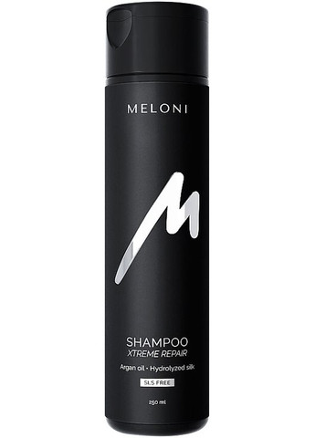 Чудове рішення для пошкодженого або фарбованого волосся — Xtreme Repair Shampoo від бренда Meloni. Це суцільна користь в елегантному чорному флаконі, що не містить агресивної хімії. Використання відновлювального безсульфатного шампуню гарантує покращення локонів вже після першого застосування. А за регулярного догляду приємно здивує результатом копіткої праці на користь здоров'я та краси кожного пасма. Особливості Meloni Xtreme Repair Shampoo: - не містить популярних поверхнево-активних речовин, що провокують безліч проблем із волоссям;- діє набагато м'якше та делікатніше;- не подразнює шкіри голови, даруючи відчуття комфорту;- не створює ефекту «кульбаби» — волосся залишається гладеньким і слухняним, легко розчісується;- збагачений гідролізатом шовку, олією аргани та рослинним комплексом на основі екстракту алое;- арганова олія ефективно зволожує волосся, зміцнює його, стимулює ріст, нормалізує вироблення себуму, допомагає в боротьбі з посіченими кінчиками;- гідролізат шовку швидко і легко проникає вглиб локонів, чудово зволожує, відновлює, підвищує захист від впливу зовнішнього середовища, зміцнює та надає сяйва;- забезпечує комплексний догляд для зволоження, відновлення та захисту;- повертає волоссю здоровий блиск, насичений колір і шовковистість.