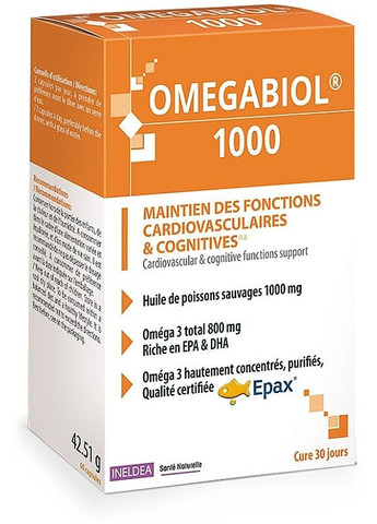 - Підтримка серцево-судинної системи та когнітивних функцій мозку (зір, пам'ять, увага, концентрація, тощо) Переваги препарату:• Жир диких видів риб 1000 мг• Омега-3 всього 800 мг• Високий вміст EPA (ейкозапентаєнової кислоти) та DHA (докозагексаєнової кислоти)• Омега-3 високого ступеня очищення та концентрації• Якість, сертифікована EPAX• Дуже хороша травна переносимість. Для людей:- бажаючих зберегти хорошу серцеву функцію та покращити функції головного мозку;- з особистою чи сімейною історією серцево-судинних захворювань;- після 40 років;- під час вагітності (після консультації лікаря);- спортсменів та людей з підвищеним фізичним навантаженням. Жирні кислоти – це молекули, що складаються з вуглецевих ланцюгів різної довжини. Так звані «омега» жирні кислоти — це жирні кислоти з ненасиченістю, тобто одним або кількома подвійними зв’язками в хімічній структурі молекули. Існує кілька типів/класів омеги:Омега 3 ?3Омега 6 ?6Омега 9 ?9Омега 7 ?7. Число відповідає положенню 1-го подвійного зв'язку на вуглецевому ланцюгу. Омега-3 є одним з основних класів поліненасичених жирних кислот і є найвідомішими з них. Омега-3 жирні кислоти утворюють сімейство так званих незамінних жирних кислот. Попередником цієї родини омега-3 є альфа-ліноленова кислота (ALA), незамінна жирна кислота, яка надходить в організм з їжею. З цього попередника ALA наш організм синтезує інші омега-3 жирні кислоти, включаючи DHA (докозагексаєнову кислоту) і EPA (ейкозапентаєнову кислоту). В значній кількості присутні в середземноморській, критській і японській дієтах, омега-3 мають багато корисних для здоров’я властивостей. Це поживні речовини, які найбільше вивчаються науковими та медичними спільнотами (понад 35 000 опублікованих досліджень!) Необхідні для розвитку та функціонування сітківки, головного мозку та нервової системи.DHA відіграє фундаментальну роль у розвитку та функціонуванні мозку (пам’ять, концентрація, увага, тощо) (2), а також у функціонуванні сітківки та зору. Зір: Омега-3 жирні кислоти відіграють сприятливу роль у запобіганні ВМД (вікової макулярної дегенерації). Було показано, що дефіцит омега-3 може підвищити ризик ВМД. Мозок: нещодавні дослідження висвітлюють роль EPA і DHA в роботі мозку дорослих і під час старіння, з припущеним позитивним впливом на підтримку психічного здоров’я (депресія, деменція, включаючи хворобу Альцгеймера). Таким чином, Омега-3 підтримують когнітивні функції (пам’ять, концентрацію, зір тощо). Сприяють правильному функціонуванню серцево-судинної системи.EPA і DHA сприяють нормальній роботі серця. Численні дослідження показують вплив риб’ячого жиру, багатого Омега-3, на зниження рівня тригліцеридів і холестерину ЛПНЩ, підтримання нормального кров’яного тиску (1). => Усі ці корисні ефекти досягаються при щоденному споживанні 250 мг EPA та DHA (EFSA). Інші ефектиОмега-3 жирні кислоти також сприятливо впливають на склад клітинних мембран, а також на числені біохімічні процеси в організмі: регуляцію артеріального тиску, еластичність судин, імунні реакції, протизапальні, протиалергічні препарати та агрегація тромбоцитів. OMEGABIOL® — це дієтична добавка на основі жиру диких видів риб, багата висококонцентрованими очищеними Омега-3 (EPA і DHA), найвищої якості, сертифікованої EPAX, для підтримки когнітивних фунцій мозку та серцево-судинних функцій. OMEGABIOL® виробляється
