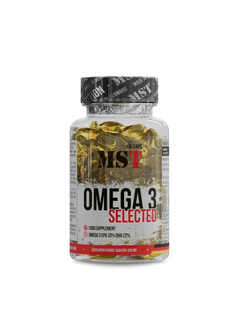 Омега-3 Omega 3 Selected MST 60 капсул Omega 3 Selected — це харчова добавка у формі м’яких желатинових капсул, що містить концентрований риб’ячий жир із високим вмістом омега-3 поліненасичених жирних кислот. Продукт призначений для підтримки здоров’я серцево-судинної системи, мозку, зору та суглобів. Омега-3 кислоти — незамінні речовини, які організм не може синтезувати самостійно, тому їх важливо отримувати з їжею або добавками. Omega 3 Selected підходить для людей, які мало споживають рибу, займаються спортом, ведуть активний спосіб життя або прагнуть знизити ризик розвитку серцево-судинних захворювань. Регулярний прийом цієї добавки сприяє нормалізації рівня холестерину, зменшенню запальних процесів, підтримці когнітивної функції, покращенню стану шкіри та зміцненню імунітету. Капсули легко ковтаються та не залишають неприємного післясмаку, що робить продукт зручним для щоденного використання. Ключові переваги: Підтримка серця: Знижує ризик розвитку серцево-судинних захворювань і нормалізує рівень холестерину. Здоров’я мозку: Покращує пам’ять, концентрацію та когнітивні функції. Зір: Сприяє збереженню гостроти зору та профілактиці вікових змін сітківки. Антизапальна дія: Допомагає зменшити запальні процеси у суглобах та м’язах. Зручна форма: М’які капсули легко ковтаються, не мають рибного присмаку. Рекомендації щодо застосування: Дорослим рекомендується приймати по 2 капсули на день під час або після їди, запиваючи достатньою кількістю води. Не перевищуйте рекомендовану добову дозу. Для досягнення максимального ефекту прийом слід проводити курсами або регулярно. Склад: Компонент Кількість на порцію (1 капсула) Риб’ячий жир 1000 мг Омега-3 жирні кислоти 550 мг Ейкозапентаєнова кислота (EPA) 330 мг Докозагексаєнова кислота (DHA) 220 мг Допоміжні компоненти желатин, гліцерин, очищена вода Протипоказання: Не рекомендується особам з індивідуальною чутливістю до компонентів продукту, алергією на рибу чи морепродукти. Перед застосуванням вагітним, жінкам у період лактації та людям із хронічними захворюваннями слід проконсультуватися з лікарем. Умови зберігання: Зберігати в сухому, захищеному від прямих сонячних променів місці при температурі не вище 25°C. Тримати подалі від дітей. Не використовувати після закінчення терміну придатності, зазначеного на упаковці. Де придбати: Придбати Omega 3 Selected можна лише в інтернет-магазині Djini. Переваги покупки в нашому магазині: Оригінальна продукція з гарантією якості. Оперативна доставка по всій Україні. Зручні способи оплати та консультації фахівців. Постійні акції та спеціальні пропозиції для покупців. Індивідуальний підхід до кожного клієнта. Замовляйте Omega 3 Selected у магазині Djini, щоб щодня підтримувати здоров’я серця, мозку та суглобів — обирайте якість та турботу про себе!