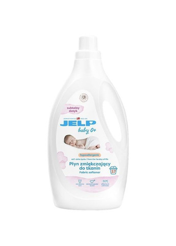 Гіпоалергенний ополіскувач для пом'якшення тканин Jelp (Джелп) Baby 0+ призначений для прання одягу дітей від народження. Основні переваги: підходить для використання з першого дня життя завдяки дуже делікатній формулі ефективно видаляє залишки миючого засобу для прання з тканин має нейтральний і м'який аромат надає тканинам м'якість, запобігає статичній електриці, полегшує прасування забезпечує захист мікробіома шкіри дерматологічно перевірено ефективно видаляє забруднення та плями при 30°C не містить гормонально активних речовин рекомендовано Польським товариством акушерок Характеристики Об'єм: 2 л Виробник: Jelp, Данія.
