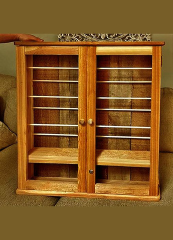 Дерев'яна шафа-органайзер для зберігання рибальських снастей - вудок, спіннінгів, блешень, котушок, воблерів.