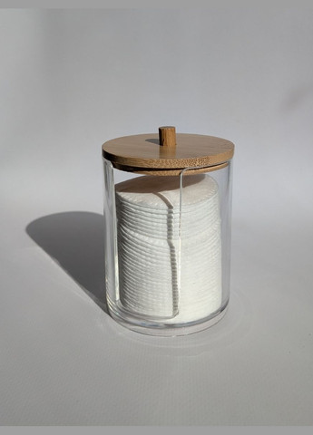 Великий прозорий пластиковий циліндр призначений для зручного та гігієнічного зберігання великої кількості ватних дисків, захищаючи їх від пилу та вологи.