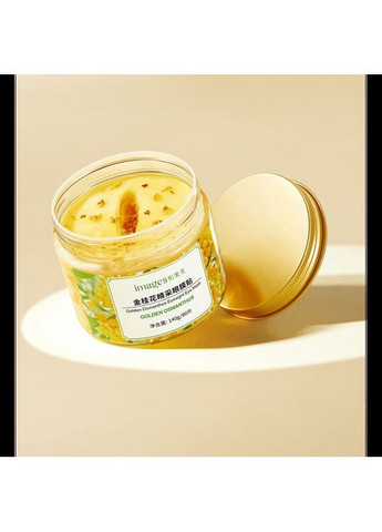 Images Golden Osmanthus Nourishing Eye Mask — це патчі для шкіри навколо очей з екстрактом і пелюстками османтусу запашного. Вони зволожують, згладжують і відновлюють шкіру, знімають напругу та стрес, підвищують пружність і уповільнюють вікові зміни. Основні інгредієнти: Екстракт османтусу запашного. Має зміцнювальну, загоювальну дію. Відновлює структуру колагенових волокон, згладжує шрами та дефекти шкіри, підтягує шкіру. Надає регенерувальну дію, запобігає подразненню та пересушуванню шкіри. Гіалуронова кислота. Створює на шкірі невидимий бар'єр, що перешкоджає випаровуванню вологи, покращує структуру шкіри сприяє регенерації епідермісу, скорочує дрібні зморшки, робить шкіру гладкою й ніжною. Переваги використання: Багатофункціональність. Патчі відновлюють, зволожують, регенерують, омолоджують, освітлюють і освіжають шкіру, знімають набряки, заспокоюють подразнення, а також допомагають розв'язати багато інших дерматологічних проблем. Швидкий ефект. Патчі локально впливають на повіки, тому швидко відновлюють шкіру та усувають її проблеми, діючи прямо на їх корінь. Тому вони можуть стати експрес-засібами для привведення себе до ладу перед важливим заходом. Удобство. Патчі мають анатомічну форму, тому ідеально лягають на повіки та не створюють дискомфорту. Їх не треба намазувати та змивати — треба просто накласти на повіки. Форма випуску: Маски випускаються у формі круглих серветок з анатомічним прорізом посередині. Патчі просякнуті цілющою сироваткою та поміщені в пластикову прозору баночку. До набору входить пінцет для зручності використання. У комплекті — 80 патчів. Спосіб застосування: Вийміть патч із баночки за допомогою пінцета та накладіть на повіки, помістивши проріз на очі. Через пів години зніміть маски, що залишилася есенцію, утріть у шкіру. Патчі є одноразовими та не підлягають повторному використанню. Зберігати вироби краще в холодильнику. Склад: Water, Glycerin, Propylene Glycol, Triethanolamine, Carbomer, Allantoin, Bis (Hydroxymethyl) Imidazolidinyl Urea, Iodopropynyl Butylcarbamate, Methylisothiazolinone, Xanthan Gum, PEG-40 Hydrogenated Castor Oil, Sodium Hyaluronate, Flavor, CI 19140, CI 16035, Osmanthus Fragrans Flower Extract.