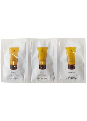 Склад набору: Парфумована олія для волосся - La'dor Perfumed Hair Oil La Pitta (пробник)1 г Парфумована олія для волосся - La'dor Hinoki Oil (пробник)1 г Парфумована олія для волосся - La'dor Perfumed Hair Oil Osmanthus (пробник)1 г Опис масел: La'dor Perfumed Hair Oil La Pitta Відновлююча олія для волосся, яка живить, пом’якшує та зволожує, не залишаючи липкості та не обтяжуючи пасма. Дарує блиск і еластичність, забезпечує стійкий аромат і зменшує пошкодження від укладки. Захищає від ламкості та електризації, термовпливу, згладжує кутикули, робить волосся шовковистим. Підходить для тонкого та тьмяного волосся, створюючи легке покриття. Має чуттєвий аромат: солодкуваті ноти кокоса, евкаліпт та квіткові акценти надають м’який деревний відтінок. La'dor Hinoki Oil Олія, що усуває сухість та пошкодження локонів, відновлюючи їх структуру та надаючи гладкість і блиск. Зволожує, не обтяжуючи та не залишаючи липкості. Робить волосся еластичним та сяючим, мінімізує пошкодження від використання фена та гарячих інструментів. Підходить для волосся середньої товщини, створюючи невагоме покриття. Дарує стійкий аромат, захищає кінчики від високих температур і запобігає пухнастості. La'dor Perfumed Hair Oil Osmanthus Розроблена для догляду за важким, ламким та сплутаним волоссям. Глибоко живить та відновлює сухі та пошкоджені пасма, запобігає сухості та ламкості, зміцнює та забезпечує термозахист. Робить волосся м'яким і шовковистим, не обтяжуючи та не залишаючи жирної плівки. Надає блиск, усуває пухнастість, захищає від агресивних факторів навколишнього середовища.