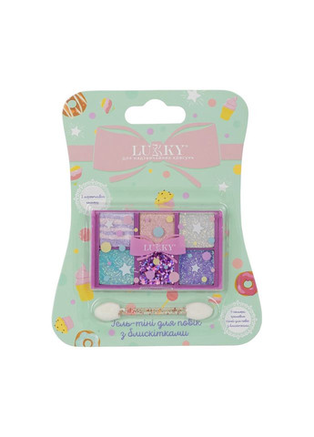 У палетці цілих 12 кольорів крем-тіней для повік Lukky з блискітками. Кожна маленька красуня знайде свій особливий відтінок. Крем-тіні з блискітками дозволять дівчинці перетворитися на свято або для виступу всього за 5 хвилин. Набір доповнений двостороннім аплікатором для зручного використання. У складі тіней використовуються тільки нетоксичні та гіпоалергенні компоненти. Змиваються тіні звичайною водою з милом без необхідності використання спеціальних засобів. Дитячі крем-тіні – це чудовий спосіб перетворитися на принцесу чи фею, або просто підняти собі настрій у вихідний день без використання дорослої косметики.