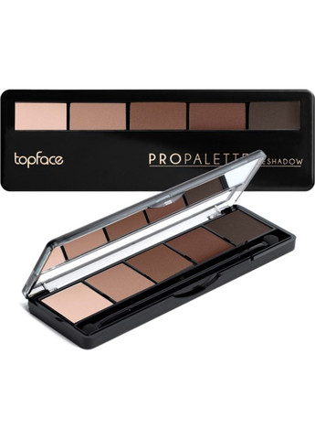 Pro Palette Topface - чудовий помічник у створенні ідеального макіяжу очей. У палітрі 5 відтінків, які добре поєднуються між собою. Ідеально підібрана палітра тіней для повік Topface Pro Palette Eyeshadow стане незамінним помічником у створенні щоденних образів. Оптимально підібрані пісочно-коричневі відтінки кольорової палітри чудово підійдуть для створення денного і вечірнього макіяжу. Для ніжного образу використовуйте світло-пісочні кольори, м'яко позначаючи нижню і верхню складки повік. Більш драматичний образ можна створити за допомогою інтенсивних коричневих відтінків, використовуючи їх на власний розсуд. Наприклад, можна виділити куточок верхньої і нижньої повіки або зробити смокі айс. Тіні чудово наносяться, добре тушуються і не обсипаються протягом цілого дня. Палітра рекомендується як для блондинок зі світлою шкірою, так і для смаглявих власниць темного волосся. Спосіб застосування: нанесіть найсвітліший відтінок на всю повіку і розтушуйте. Найбільш темним кольором підведіть очі вздовж нижніх вій і розтушуйте. Темним відтінком проведіть лінію вздовж верхніх вій і в куточках очей. Злегка розтушуйте. Нанесіть темніший колір на рухому повіку, ретельно розтушуйте перехід кольору.