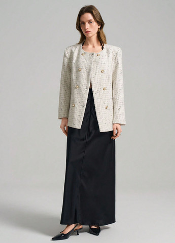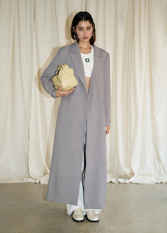 Відчуйте сутність невимушеної елегантності з нашим двоколірним пальто Clasi з відкритим переднім рукавом-ліхтариком. Ідеально підходить для пізньої осені, цей повсякденний, але вишуканий виріб має багатобарвний візерунок з кольоровими блоками та рукавами у стилі бішоп, які додають нотки драматизму. Виготовлено з м'якої тканини, воно має планку на один гудзик і виріз на лацкані, а його вільний крій забезпечує максимальний комфорт.