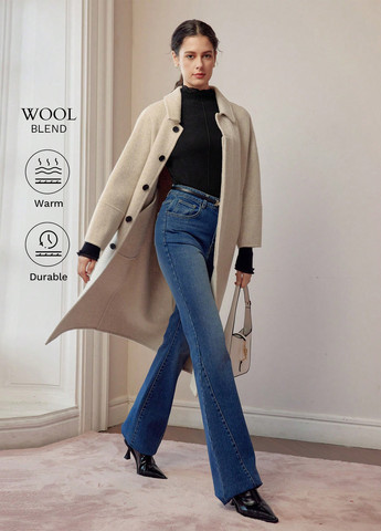 Колір Бежевий / Сезонність Демісезон / Тип Без наповнювача / Стиль Діловий, Кежуал / Декор Без декору / Матеріал верху Вовна / Бренд SHEIN / Візерунок Меланж / Довжина виробу Довге / Довжина рукава Довгий