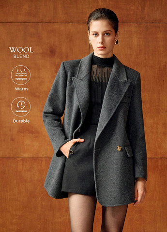 Колір Темно-сірий / Сезонність Демісезон / Стиль Кежуал / Декор Без декору / Матеріал верху Віскоза, Вовна / Бренд SHEIN / Візерунок Однотонний / Довжина виробу Коротке / Довжина рукава Довгий / Капюшон Без капюшона