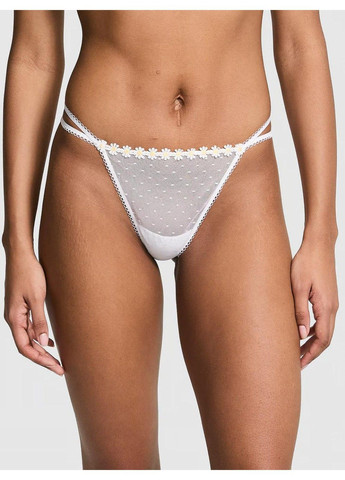Трусики-стрінги жіночі Victorias Secret PINK Wink Strappy V-String Thong Panty білі Трусики-стрінги з ексклюзивним дизайном такі ж грайливі, як і зручні. Спереду модель трусиків має ніжну сіточку з вишитими ромашками та з боків - витончені подвійні резинки. Склад: Основна частина: 100% поліамід Ластовиця: 100% бавовна Розмір XS S M L XL Обєм талії, см 55-65 65-75 75-85 85-100 від 100 Обєм стегон, см 84-90 90-97 97-102 102-112 112-120