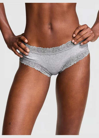 Трусики-чіки жіночі бавовняні з мереживом PINK Victoria's Secret Wink Lace-Trim Cheeky Panty сірі М’яка рубчикова в’язка поєднується з вишуканим еластичним мереживом, а помірне покриття ззаду дарує відчуття свободи й комфорту. Склад: Основна частина: 95% бавовна, 5% еластан Ластовиця: 100% бавовна Якщо Ви сумніваєтесь між двома розмірами, краще взяти більший. Розмір XS S M L XL Об'єм талії, см 55-65 65-75 75-85 85-100 від 100 Об'єм стегон, см 84-90 90-97 97-102 102-112 112-120